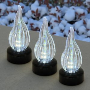 ✔ realistyczny efekt płomienia ✔ energooszczędna dioda LED ✔ elegancka srebrna podstawa ✔ barwa zimna – nowoczesny wygląd ✔ długi czas świecenia (w zależności od baterii) ✔ idealny do zniczy całorocznych i świątecznych | Świeca LED – Biała, Potrójny Płomień 18 cm