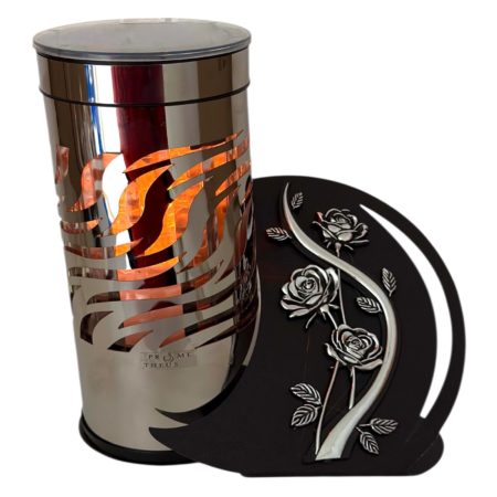 Elegancka forma przypominająca płomień oraz srebrna podstawa nadają jej stylowego wyglądu, który doskonale komponuje się z różnymi typami zniczy i kapliczek. Produkt nie wymaga wymiany wkładów ani podłączenia do prądu, co czyni go wygodnym i ekonomicznym w użytkowaniu.