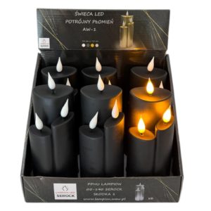 | Content | Świeca LED – Czarna, Potrójny Płomień 18 cm