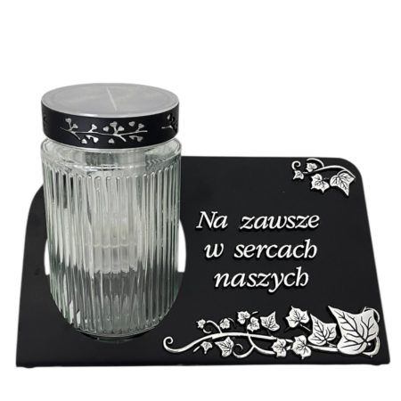 - Materiał: Szklany znicz z podstawą i kapturem z tworzywa
