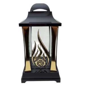 | Content | Stylowy znicz w formie latarni w kolorze czarno-złotym to elegancka i trwała dekoracja nagrobna. Klasyczne połączenie czerni i złota oraz ozdobny motyw płomienia z różą nadają mu wyjątkowy i dostojny wygląd, który pięknie prezentuje się na każdym pomniku.