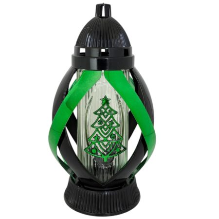 Znicz Szyba Beczka Mini Choinka Czarno Zielona to wyjątkowy symbol pamięci i spokoju, który łączy świąteczną estetykę z wysoką jakością wykonania. Doskonale sprawdzi się jako elegancki akcent nagrobny w okresie zimowym. | Znicz K-21 Zielony