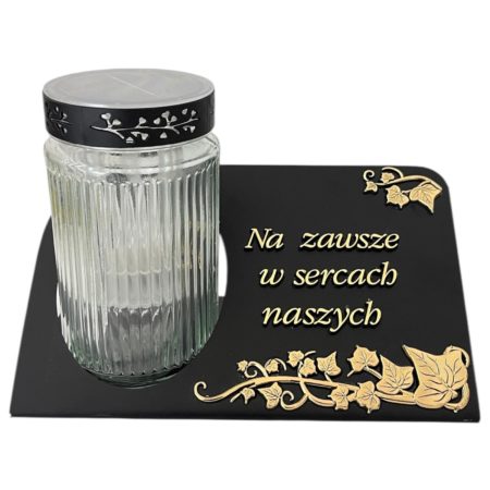 - Materiał: Szklany znicz z podstawą i kapturem z tworzywa