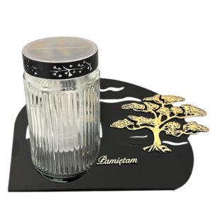 Złote zdobienia w formie drzewka nadają mu wyjątkowego charakteru i elegancji. To praktyczne i ekologiczne rozwiązanie – nie wymaga wkładów ani dodatkowego zasilania, a dzięki solidnej konstrukcji sprawdza się przez cały rok.
