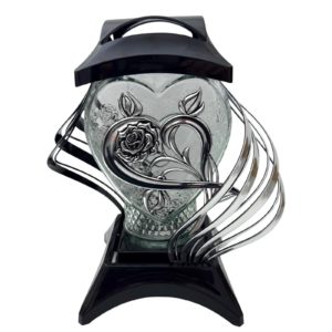 | Content | Elegancki i wyjątkowo efektowny znicz w kształcie serca z dekoracyjną srebrną różą. Połączenie klasycznej czerni z połyskującym srebrem nadaje mu dostojny, ponadczasowy charakter. Idealny jako wyraz pamięci i szacunku.