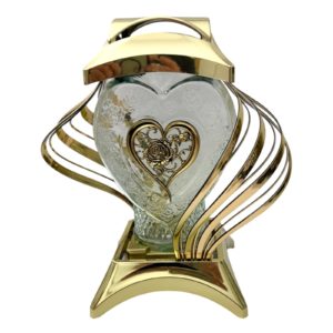 | Content | Elegancki znicz w formie kapliczki z ozdobnym motywem serca i róży. Szklany wkład w kształcie serca został subtelnie zdobiony delikatnym wzorem, a centralny element dekoracyjny w kolorze złota podkreśla wyjątkowy charakter produktu. Nowoczesna, falowana oprawa nadaje całości lekkości i elegancji.