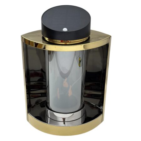 Znicz Latarnia Metal LN SL 2535 Solar Srebrny to doskonały wybór dla osób poszukujących trwałego, nowoczesnego i eleganckiego znicza z automatycznym podświetleniem. | Piękny srebrny solarny znicz o podstawie ze stali malowanej proszkowo, ścianki boczne oraz przód wykonany ze stali chromowanej. Na górze znicza znajduje się fotowoltaiczny panel, który zasila żółte światło znajdujące się w tubie znicza.