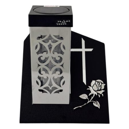 | Content | Stylowy znicz w formie latarni Paris V-3 w eleganckim wykończeniu czarno-złotym to doskonały wybór dla osób ceniących klasykę i estetykę. Złote detale w postaci krzyża oraz róży nadają mu wyjątkowego, szlachetnego charakteru, pięknie komponując się z miejscem pamięci.