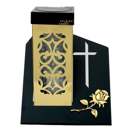 Wybór tego znicza to inwestycja w produkt o wysokiej jakości i niezwykłym designie. Aplikacja róży w złotym odcieniu dodaje elegancji, czyniąc go wyjątkowym dodatkiem na każdym grobie. Jego solidna konstrukcja i odporność na warunki atmosferyczne sprawią, że będzie służył jako trwała pamiątka przez wiele sezonów. | Parametry produktu: