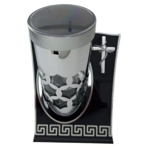 Znicz wykonano z trwałego tworzywa sztucznego, odpornego na codzienne użytkowanie i zmienne warunki atmosferyczne. Kompaktowa wysokość 25 cm sprawia, że doskonale prezentuje się na pomniku lub nagrobku.
