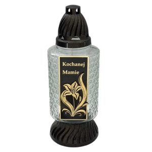 | Znicz wykonany jest z czarnego plastiku odpornego na warunki atmosferyczne. Przezroczysty szklany klosz zapewnia widoczność płomienia. Złoty napisz kochanej mamie wyraża miłość i pamięć. Nowoczesny kształt wyróżnia się na tle innych zniczy.